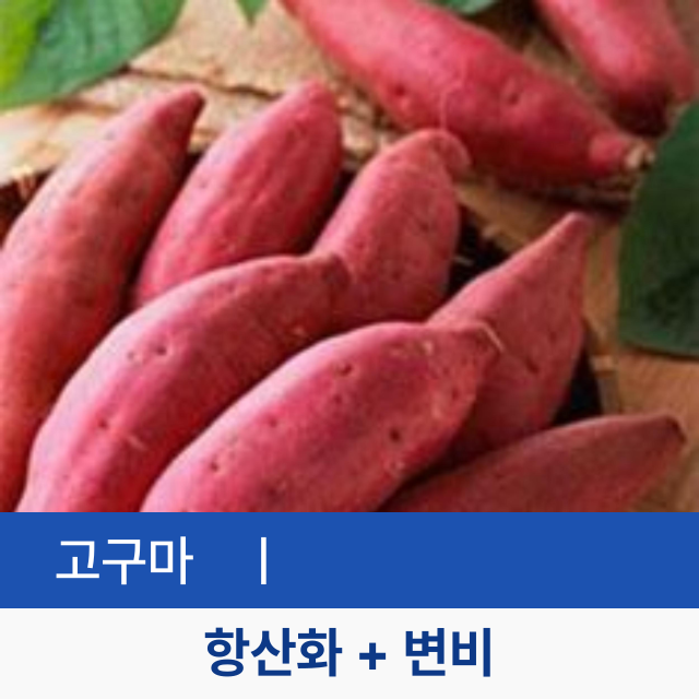 - 효능: 베타카로틴과 식이섬유가 풍부해 항산화 작용과 변비 예방에 효과적입니다. 포만감이 커 다이어트 간식으로도 인기!